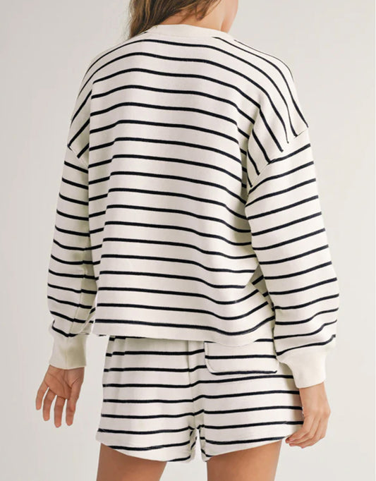 Stripes Printed Half Button Long Sleeve Top and Shorts Set