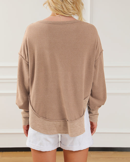 Exposed Seam Ribbed Thumbhole Sleeve Buttoned Sweatshirt
