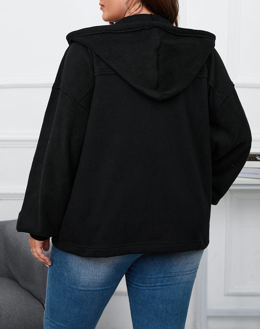 Plus Size Bishop Sleeve Zip Up Hooded Jacket