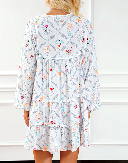 Tassel Tie Split Neck Boho Floral Ruffle Dress
