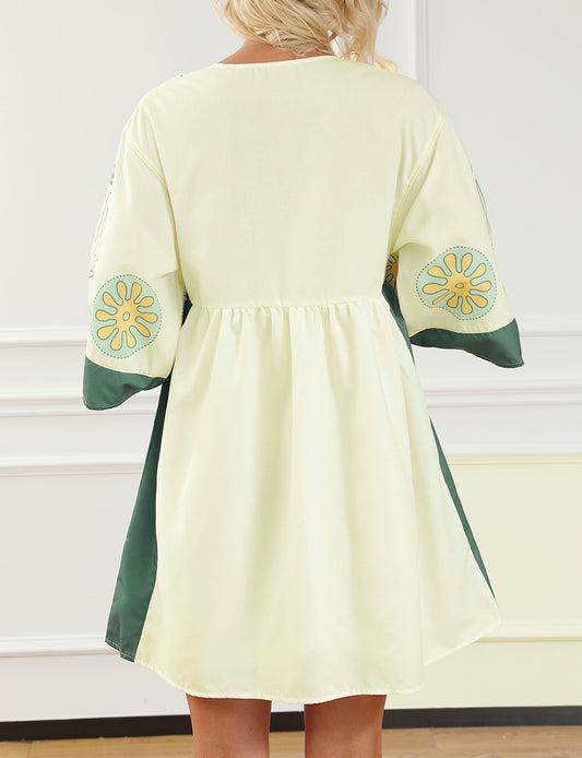 Boho Print V Neck Empire Waist Short Kimono Dress