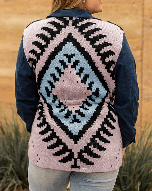 Plus Size Corduroy Jacquard Knit Aztec Back Jacket