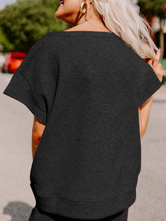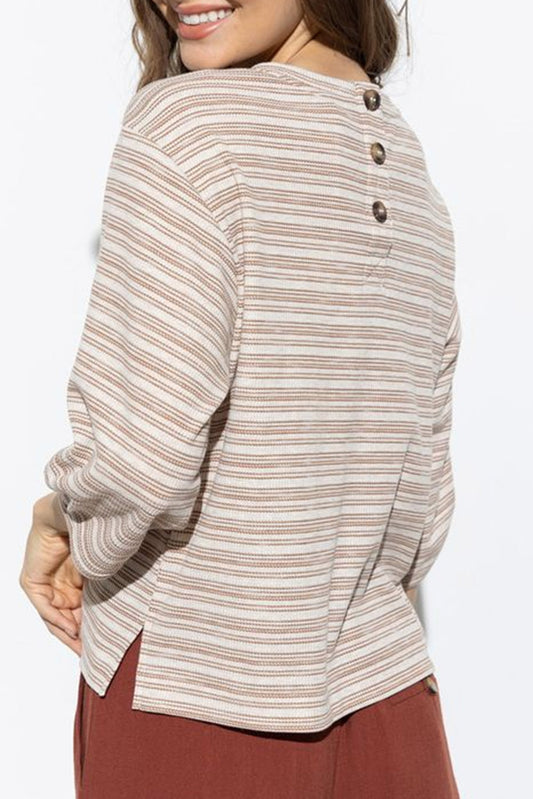 Waffle Knit Drop Shoulder Long Sleeve Top
