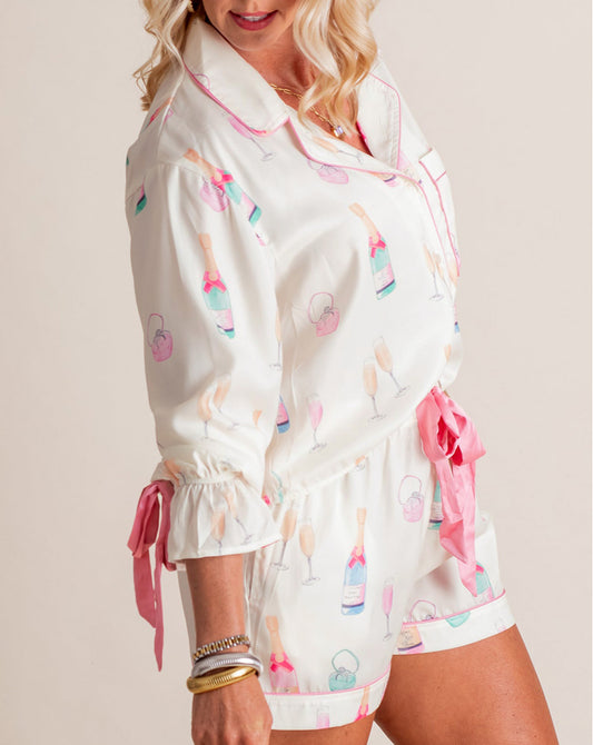 Plus Size Wine Glass Print Bow Knot Pajama Set