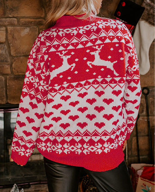 Merry Christmas Reindeer Heart Pattern High Neck Sweater