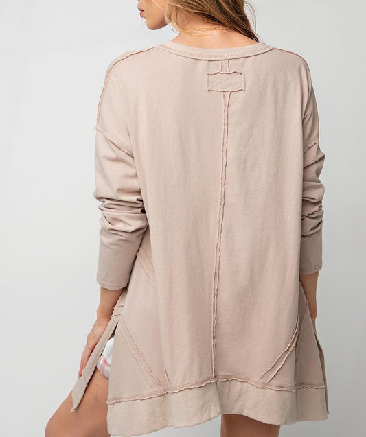 Leopard Contrast Waffle Knit Twist Hem V Neck Top