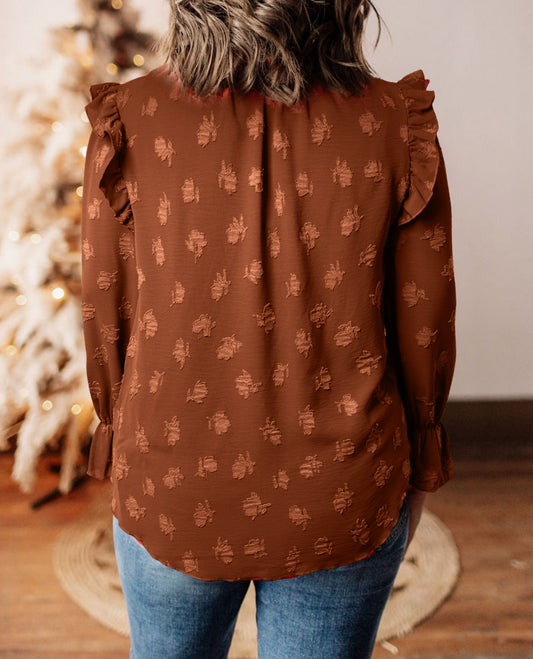 Plus Size Textured Frill Trim Flounce Sleeve Blouse