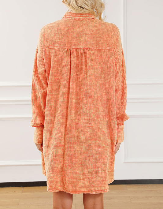 Crinkled Dual Chest Pocket Oversized Shirt Dress
