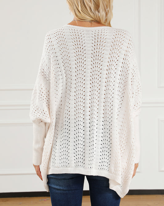 Ribbed Hollow Knit Dolman Sleeve Sweater