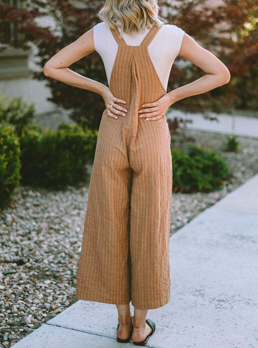 Striped Pleated Wide Leg Pocketed Jumpsuit