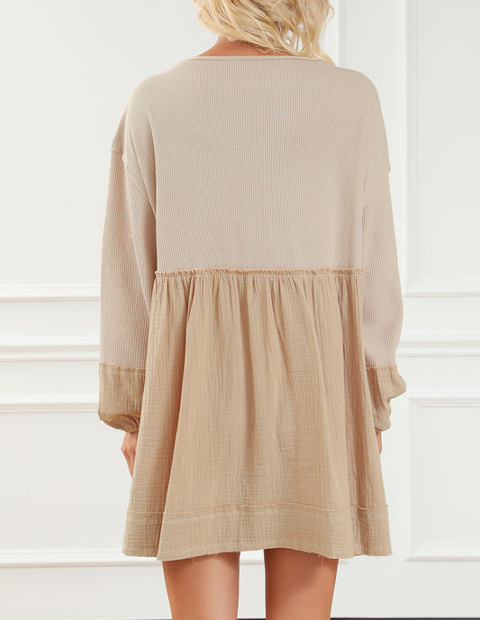 Waffle Crinkle Patchwork Raw Seam Mini Dress