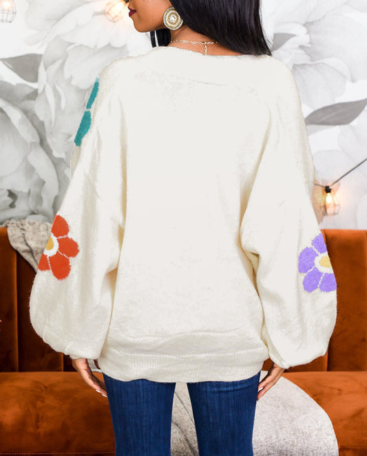 Flower Jacquared Bubble Sleeve Open Cardigan