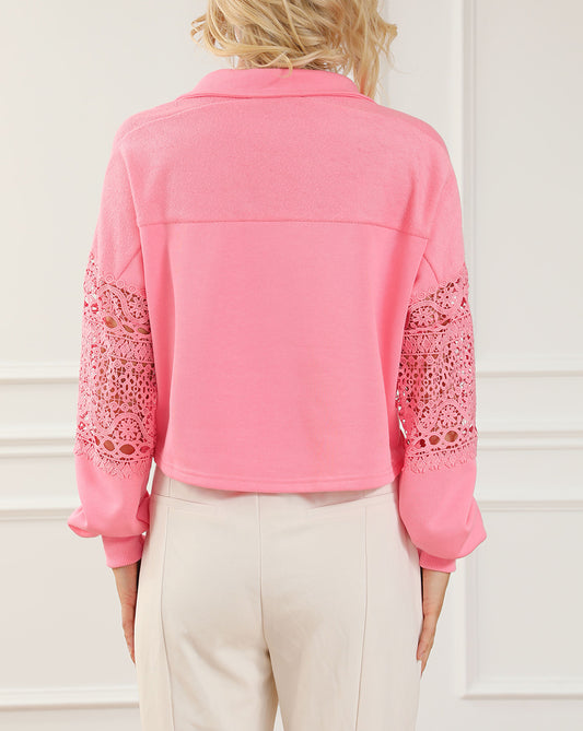 Plus Size Strappy Neck Lace Waffle Patchwork Top