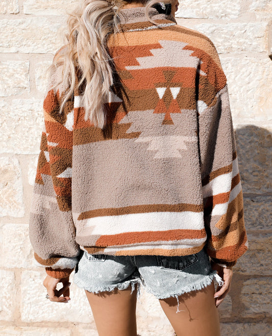 Aztec Quarter Zip Pocketed Fleece Sweatshirt