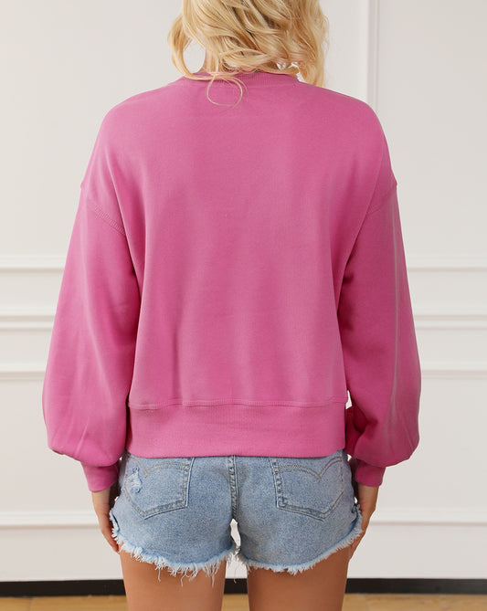 Solid Textured Raglan Sleeve Pullover Sweatshirt
