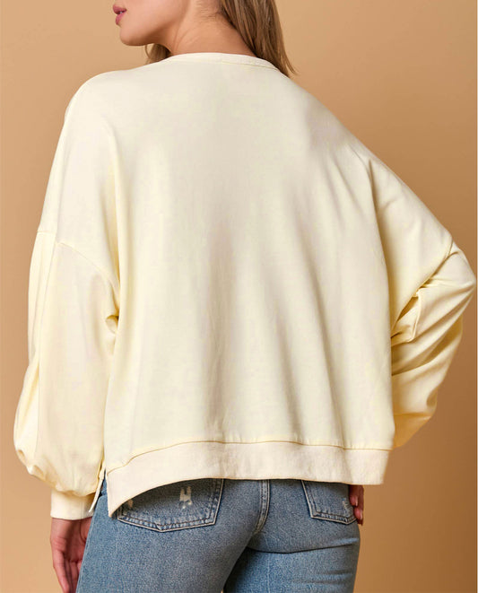 Tinsel Flower Dropped Puff Sleeve Sweatshirt