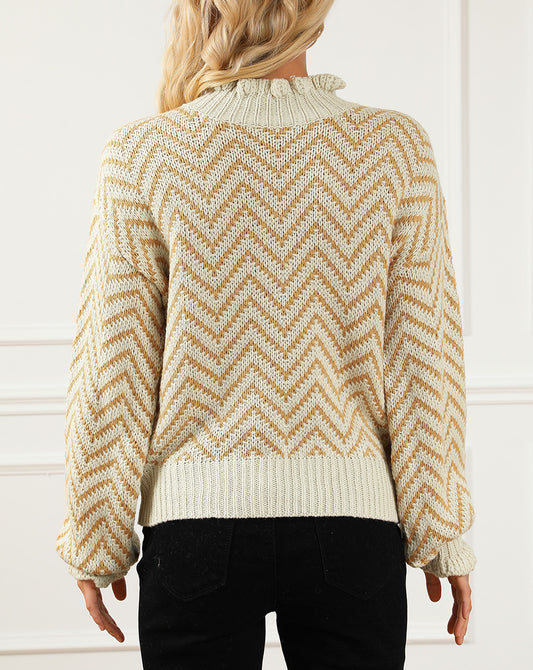 Striped Ruffled Sleeve Buttoned Half-Placket Top