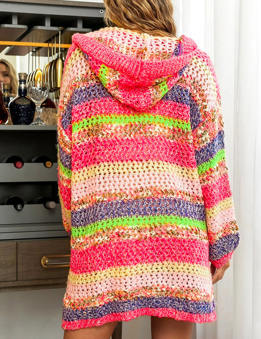 Drop Shoulder Puff Sleeve Buttoned V Neck Cardigan