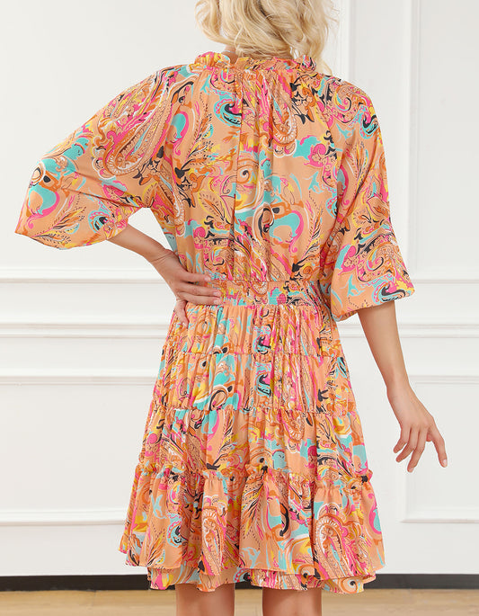 Plus Size Floral Puff Sleeve Surplice Ruffled Dress