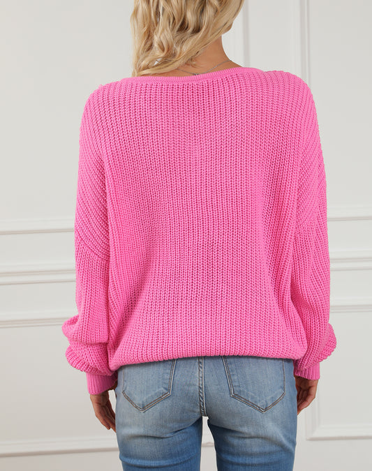 V Neck Drop Shoulder Slouchy Sweater