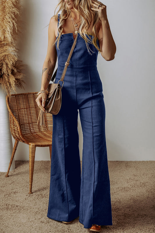 Seamed Zipper Spaghetti Strap High Waist Flared Jumpsuit