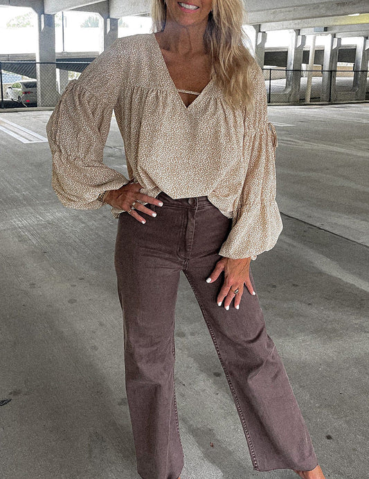 Floral Print Buttons Front Bubble Sleeve Shirt