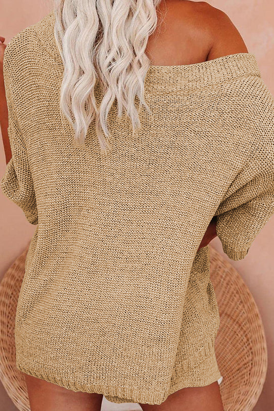 Waffled Knit Thumb Sleeve Pocketed Cardigan