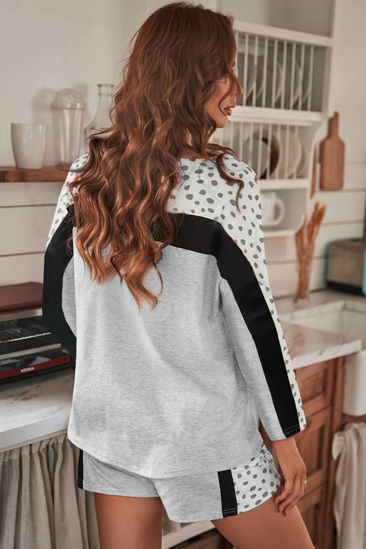 Leopard Colorblock Patchwork Pullover and Shorts Set