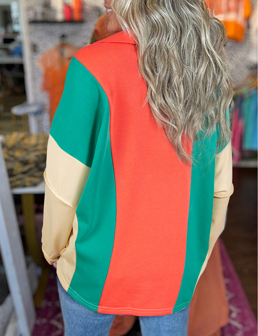 Colorblock Exposed Seam Crewneck Casual Sweatshirt