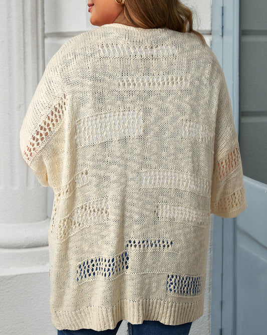 Plus Size Slouchy Hollowed Knit Open Front Cardigan