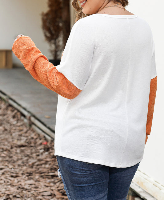 Plus Size Color Block Textured Patchwork Top with Pocket