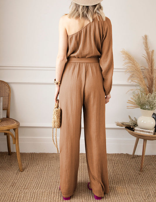 Crinkled Texture One-shoulder Loose Jumpsuit