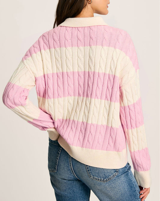 Stripe Cable Knit Collared Henley Sweater