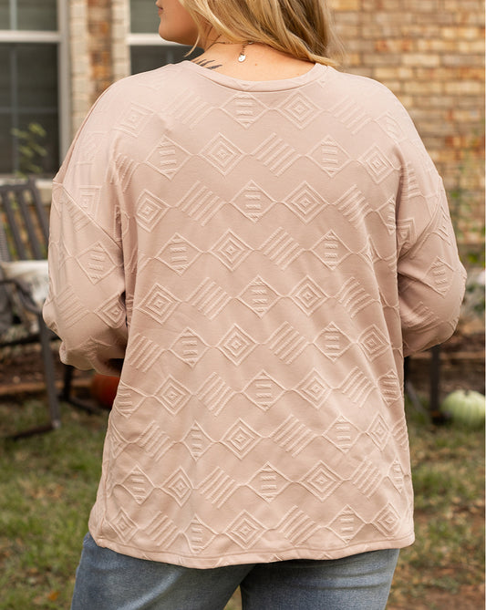 Plus Size Textured Drop Shoulder Crew Neck Sweatshirt