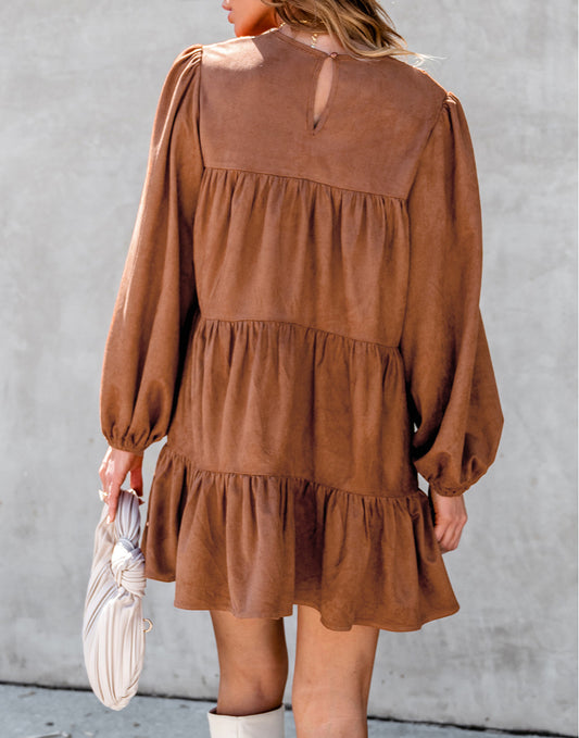 Plus Size Glitter Metallic Bell Sleeve Round Neck Mini Dress