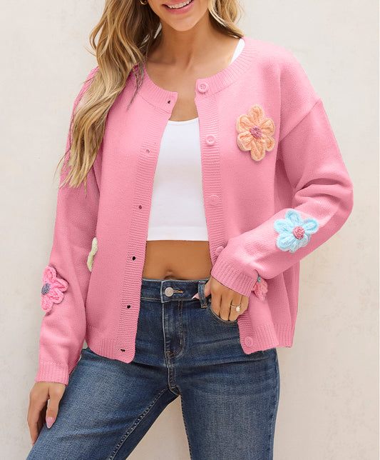 Cute Knitted Floral Pattern Button Up Cardigan