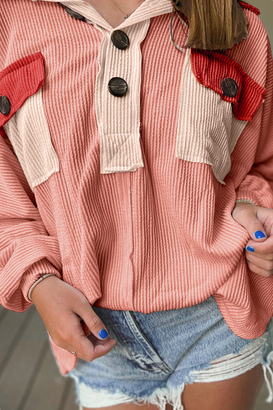 Colorblock Corduroy Chest Pocket Buttoned Top
