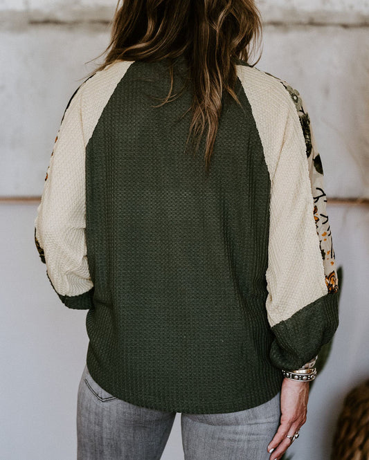 Plus Size Floral Raglan Colorblock Patchwork Knit Blouse