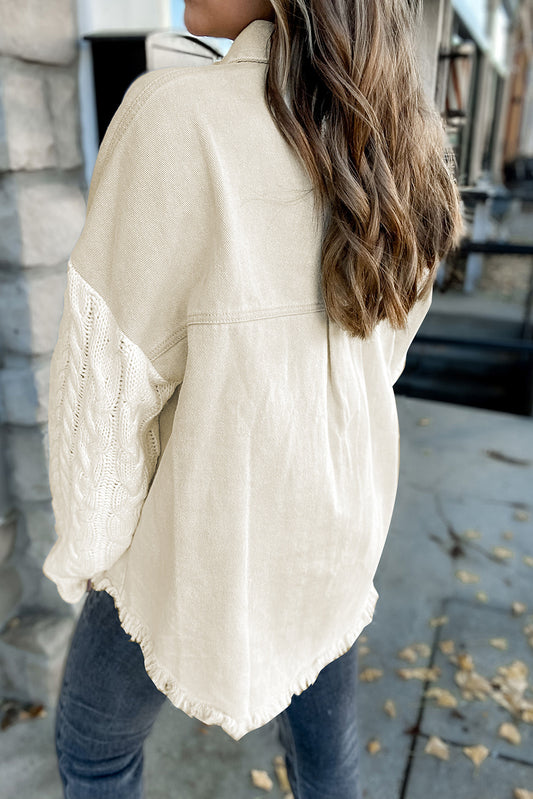 Textured Waffle Knit Chest Pockets Cropped Shacket