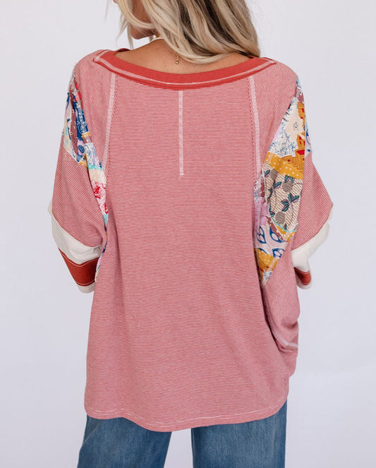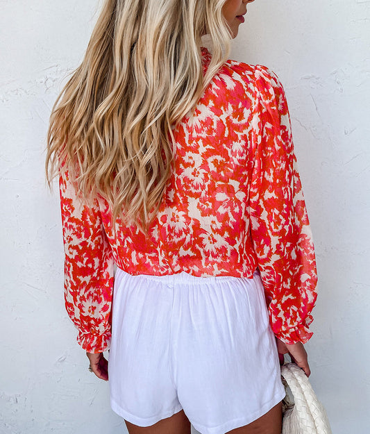 Floral Patchwork Print Long Puff Sleeve Shirt