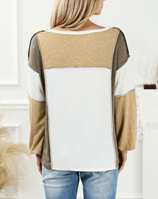Colorblock Bishop Sleeve Ribbed Trim Sweater