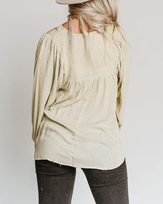 Floral Embroidered Swiss Dot Split Neck Babydoll Blouse