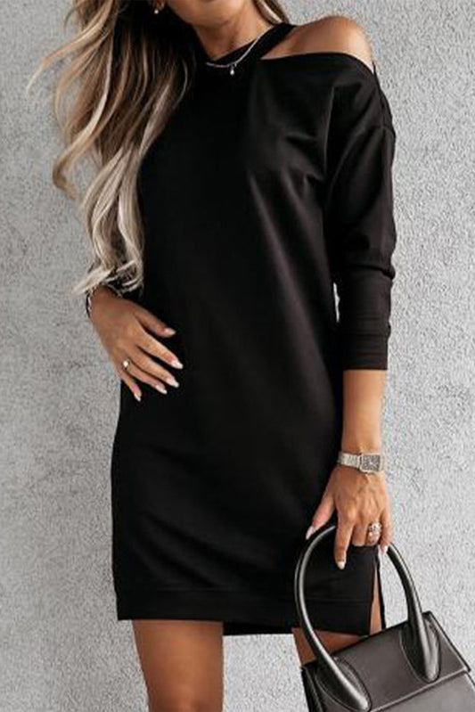 Single Cold Shoulder T-shirt Dress with Slits
