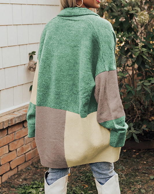 Colorblock Draped Open Front Chunky Cardigan