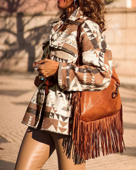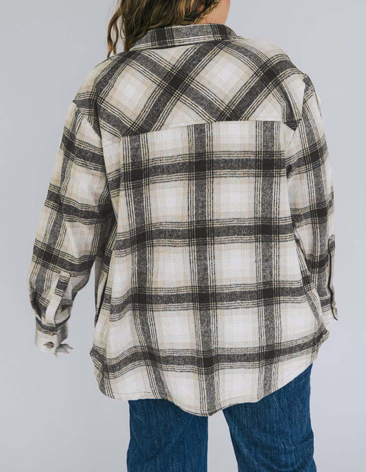 Plus Size Brushed Plaid Flap Pocket Shacket