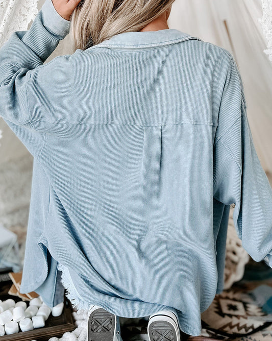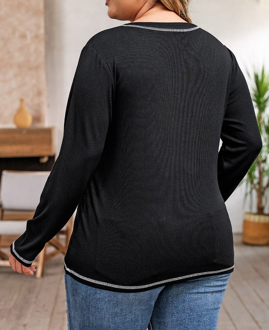 Plus Size Contrasting Topstitch Ribbed Henley Top