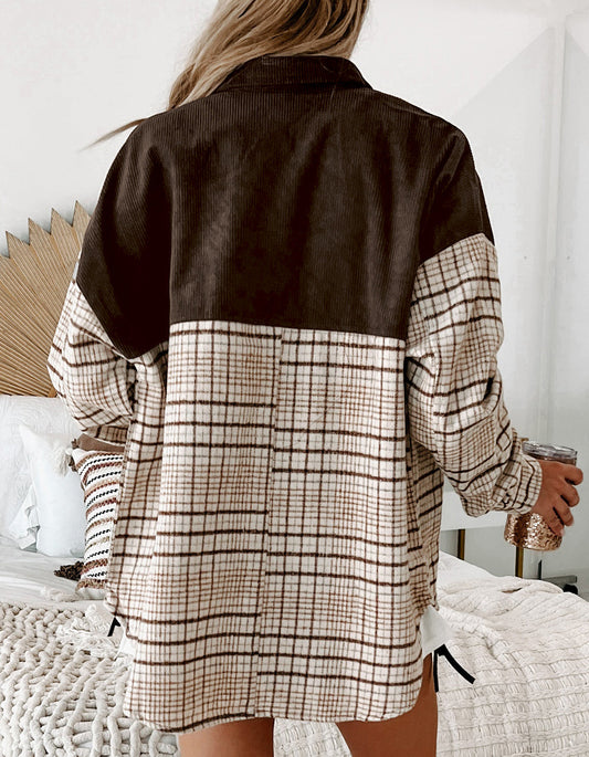 Plaid Patchwork Button-up Shift Shirt Jacket