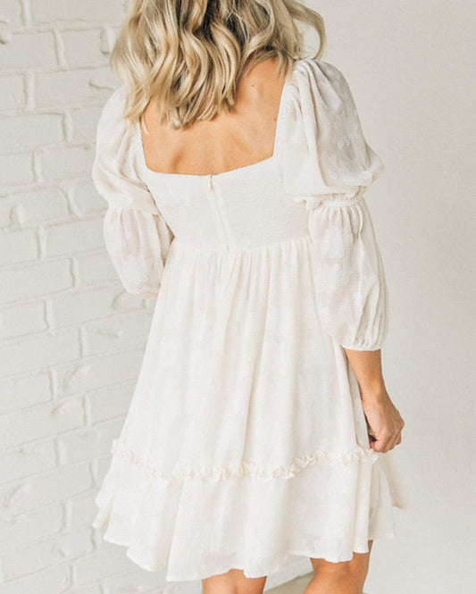 Jacquard Square Neck Bubble Sleeve Dress