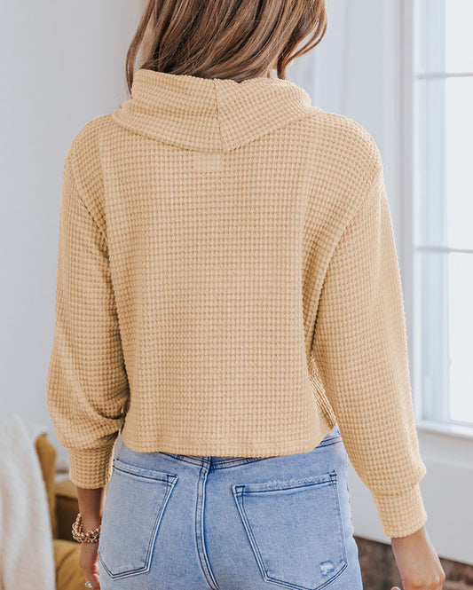 Solid Waffle Knit Turtleneck Long Sleeve Top