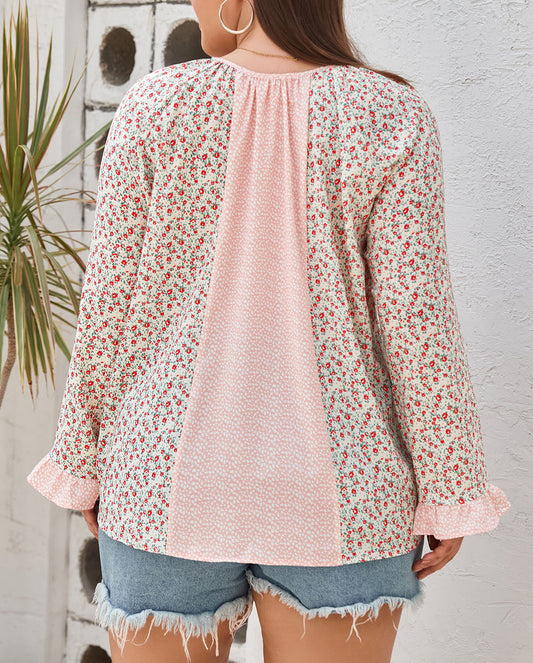 Dotty Floral Patchwork Plus Size Long Sleeve Blouse